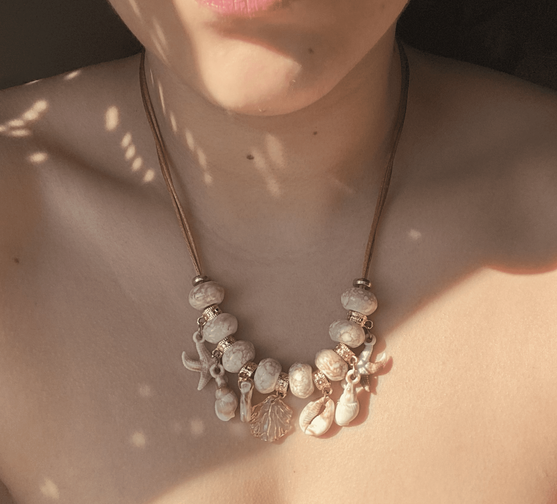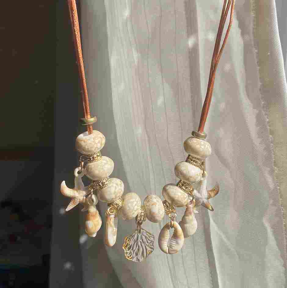 - Feita de MIÇANGA, fio de cetim e fechos de aço.